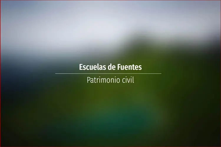 Escuelas de Fuentes. El conjunto está formado por dos naves paralelas a la carretera, separadas mediante un pequeño eje vertical; cada una de las naves muestra seis ventanales simétricos. ...